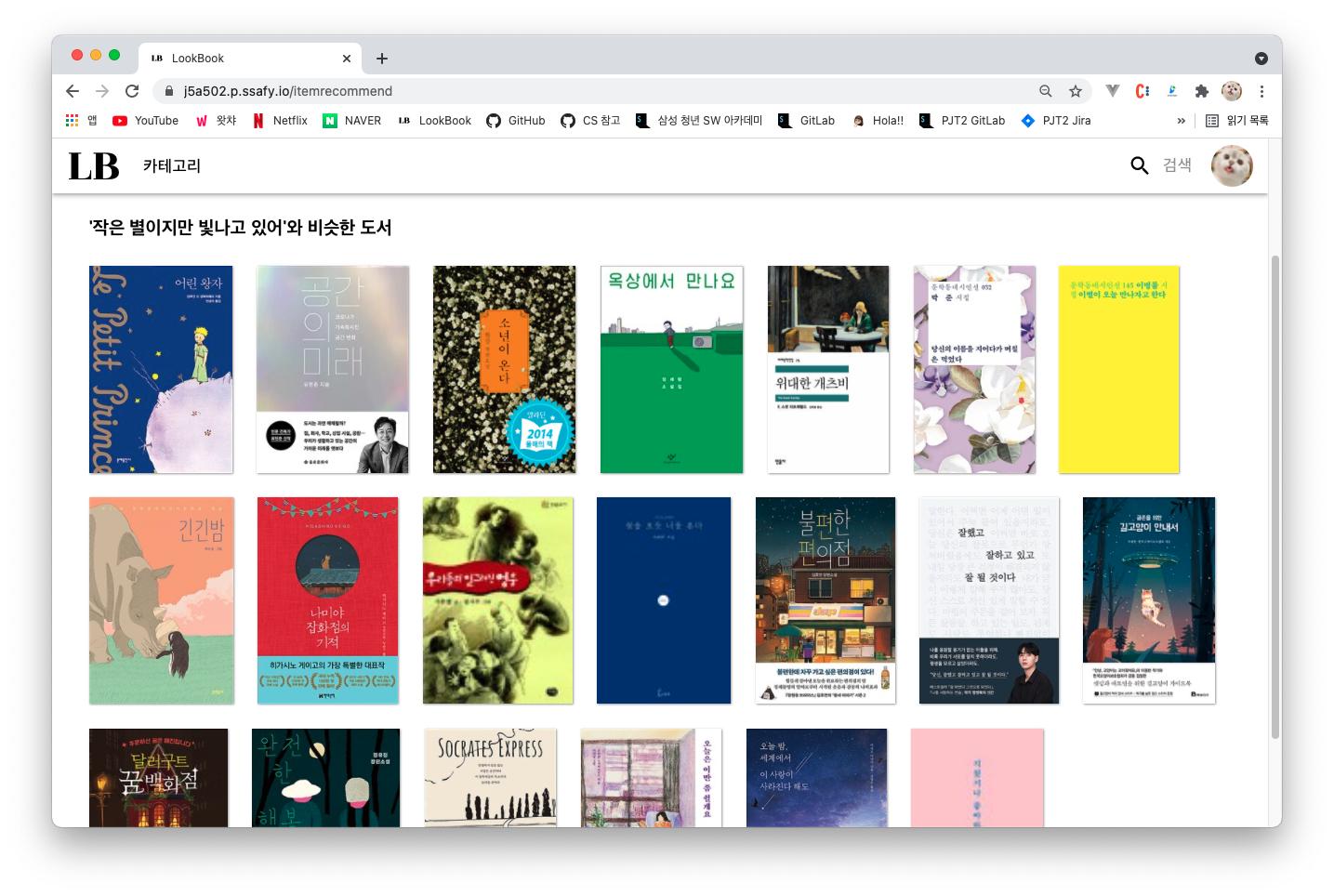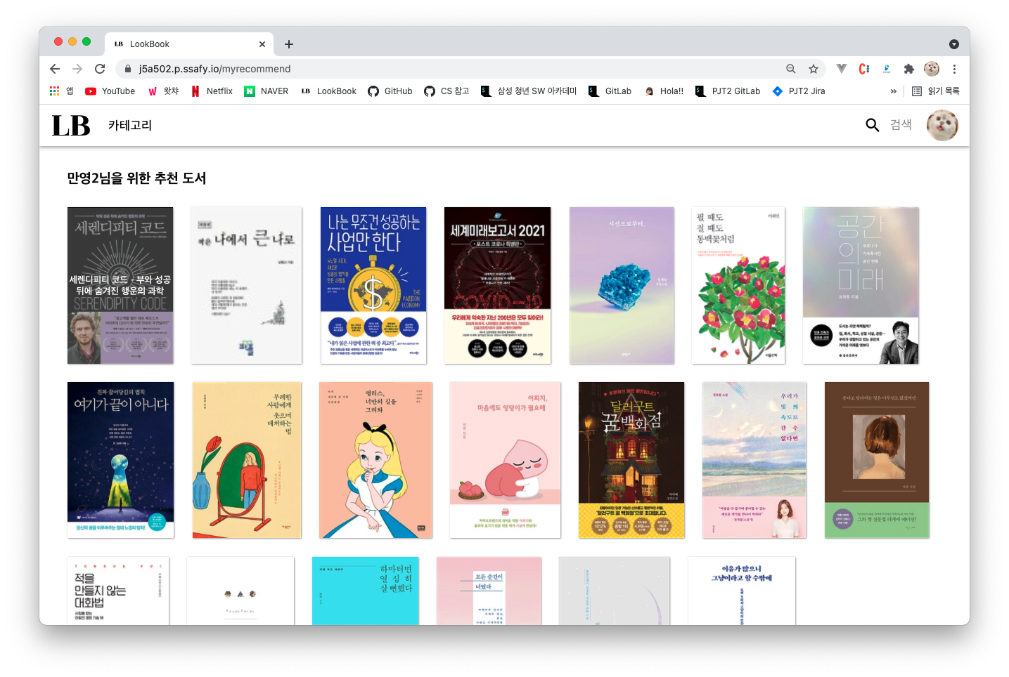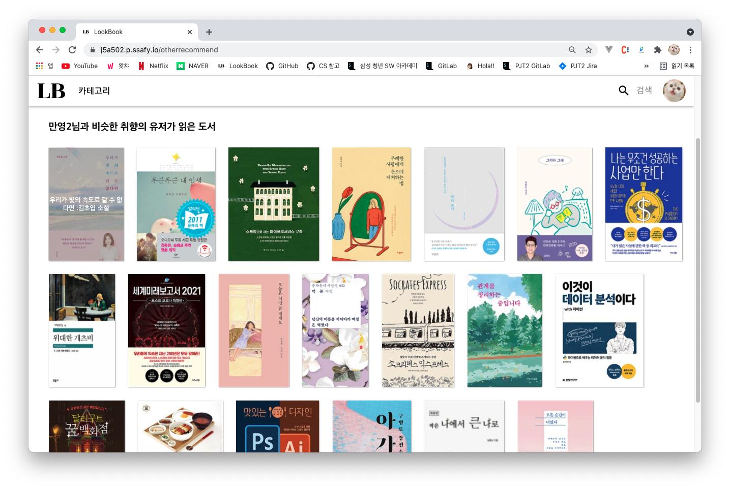 잡지 속의 룩북처럼 최신 도서 트렌드와 사용자 취향저격 도서를 추천해주는 서비스입니다.