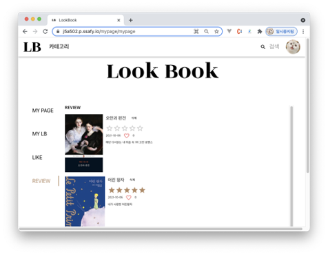 | MY PAGE | GRADE | REVIEW | LIKE |