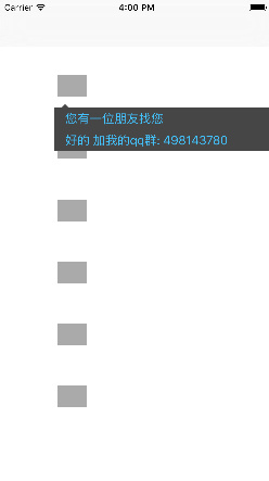 view1.dataArray = @[@"您有一位朋友找您", @"好的 加我的qq群: 498143780"];