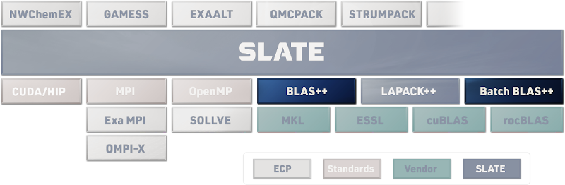 BLAS++ is part of the SLATE project (Software for Linear Algebra Targeting Exascale), which is funded by the Department of Energy as part of its Exascale Computing Initiative (ECP). Closely related to BLAS++ is the LAPACK++ project, which provides a C++ API for LAPACK.