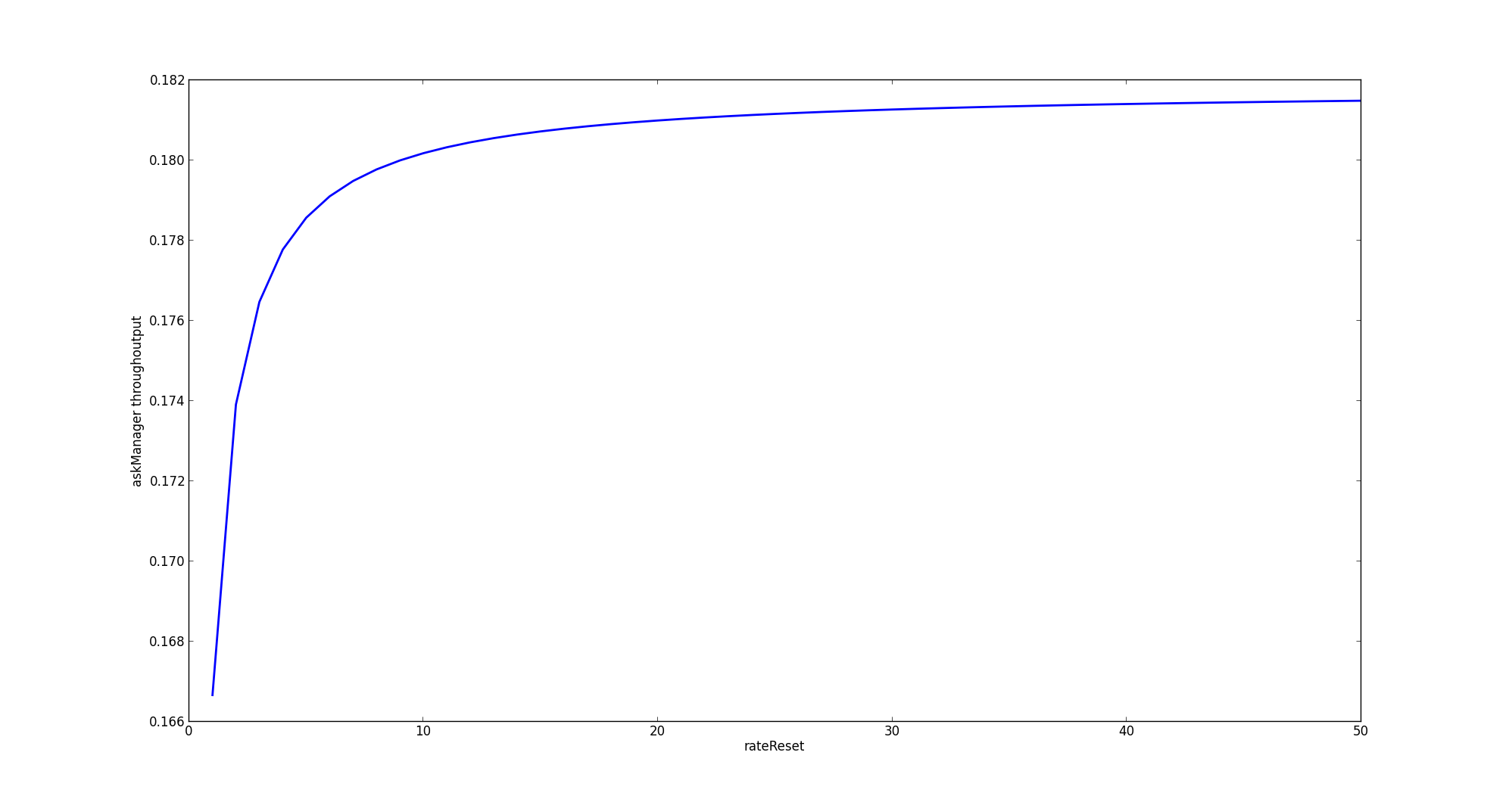 Let's check how throughtput of askManager action changes when rateReset changes from 1 to 50 with step 1. The default result of this command will be a matplotlib graph.