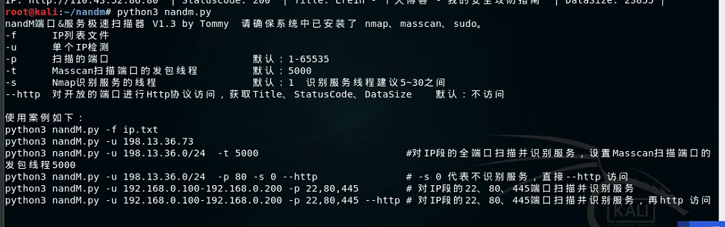 nandMScan 端口&服务极速扫描器 V1.3 by test502git 请确保系统中已安装了 nmap、masscan、sudo。