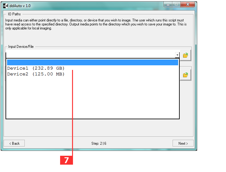 5- Input Device/File: it can be a valid device or file path to pass for dd as input (if=).