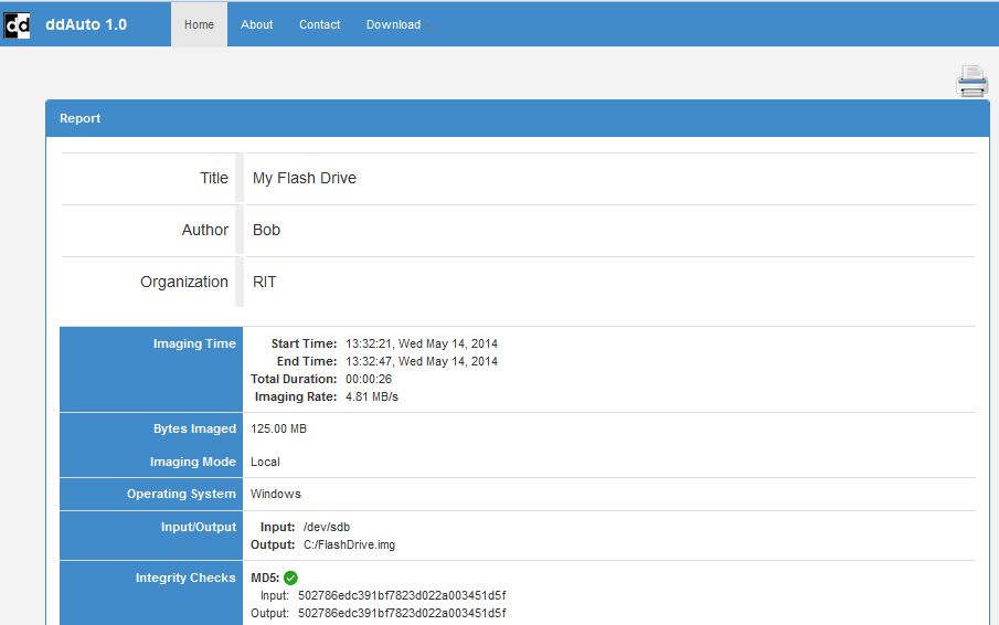The HTML summary report confirms wither the imaging processed successful or not by showing the checksum test results. It also can be printed or exported as a record.