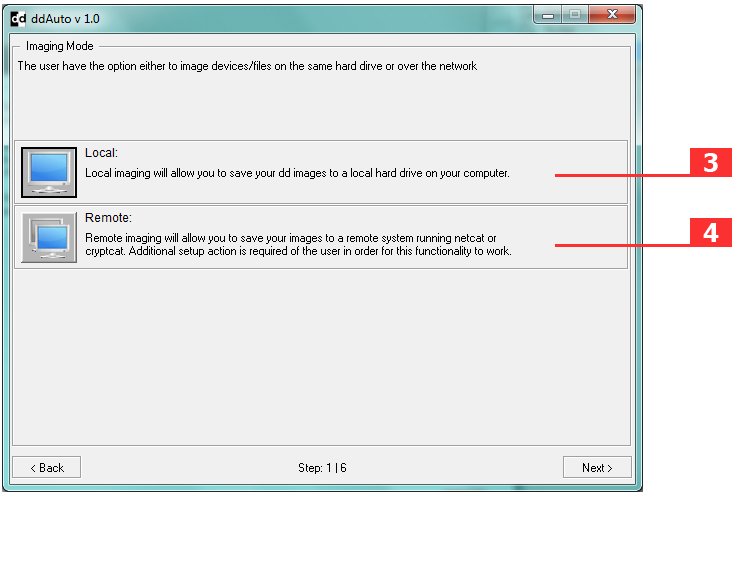 3- Local: allows the user to image attached devices locally.