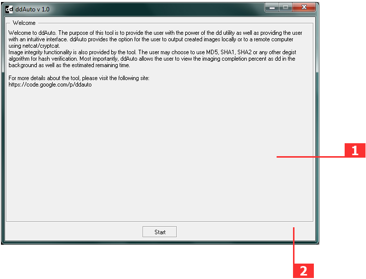 ddAuto is an open-source front-end GUI cross-platform imaging tool written in Perl to automate dd utility process. The purpose of this tool is to provide the user with the power of the dd utility as well as providing the user with an intuitive interface. ddAuto provides the option for the user to image attached drives (e.g. HD, Flash Drive) locally or remotely via TCP protocol using netcat/cryptcat. Image integrity functionality is also provided by the tool. The user may choose to use MD5, SHA1, SHA2 or any other degist algorithm for hash verification. Most importantly, ddAuto allows the user to view the imaging completion percent as dd in the background as well as the estimated remaining time.
