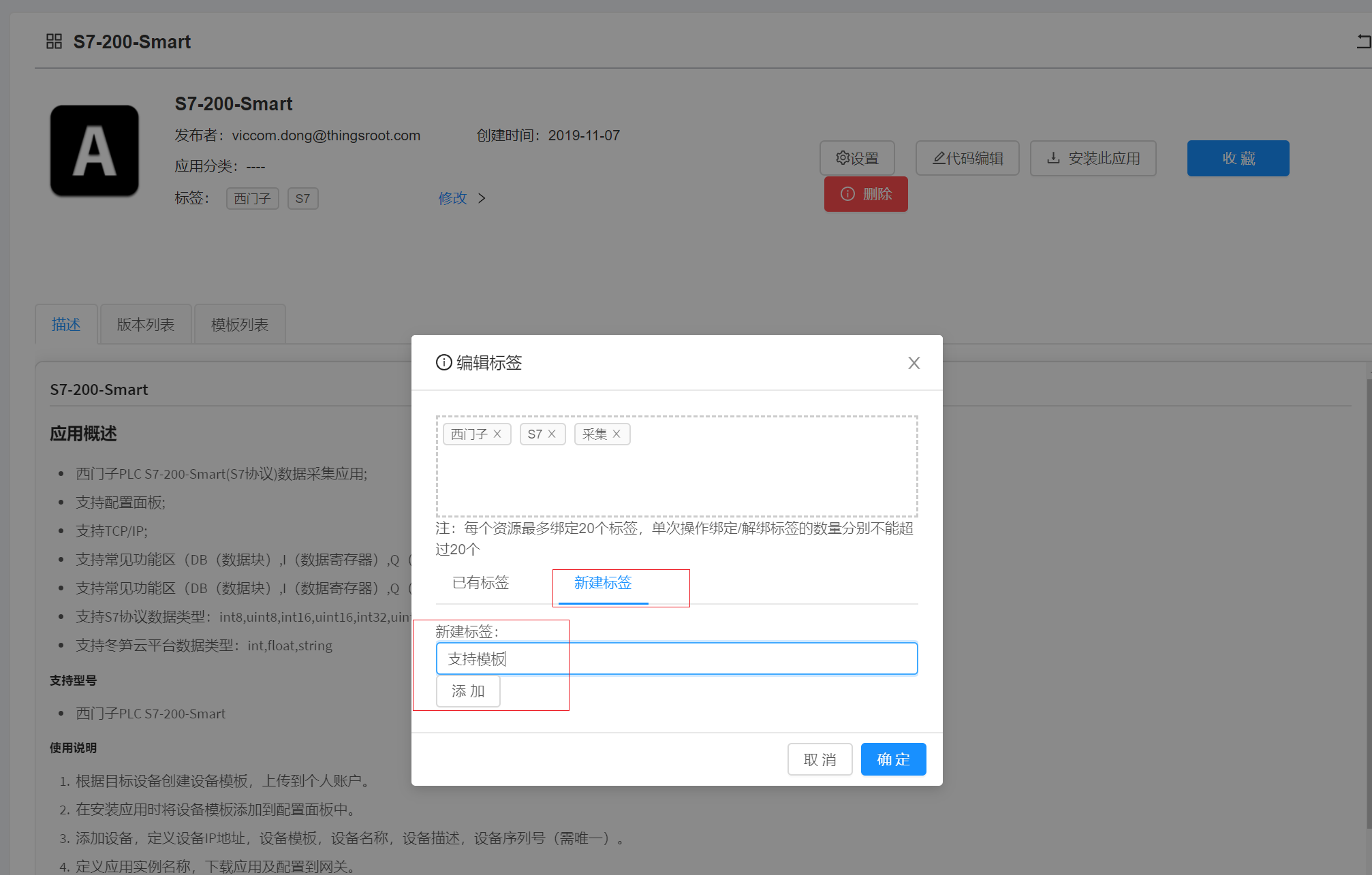 应用详情:编辑标签:新建标签无法增加  提交时出错  等待Frappe官方修改。