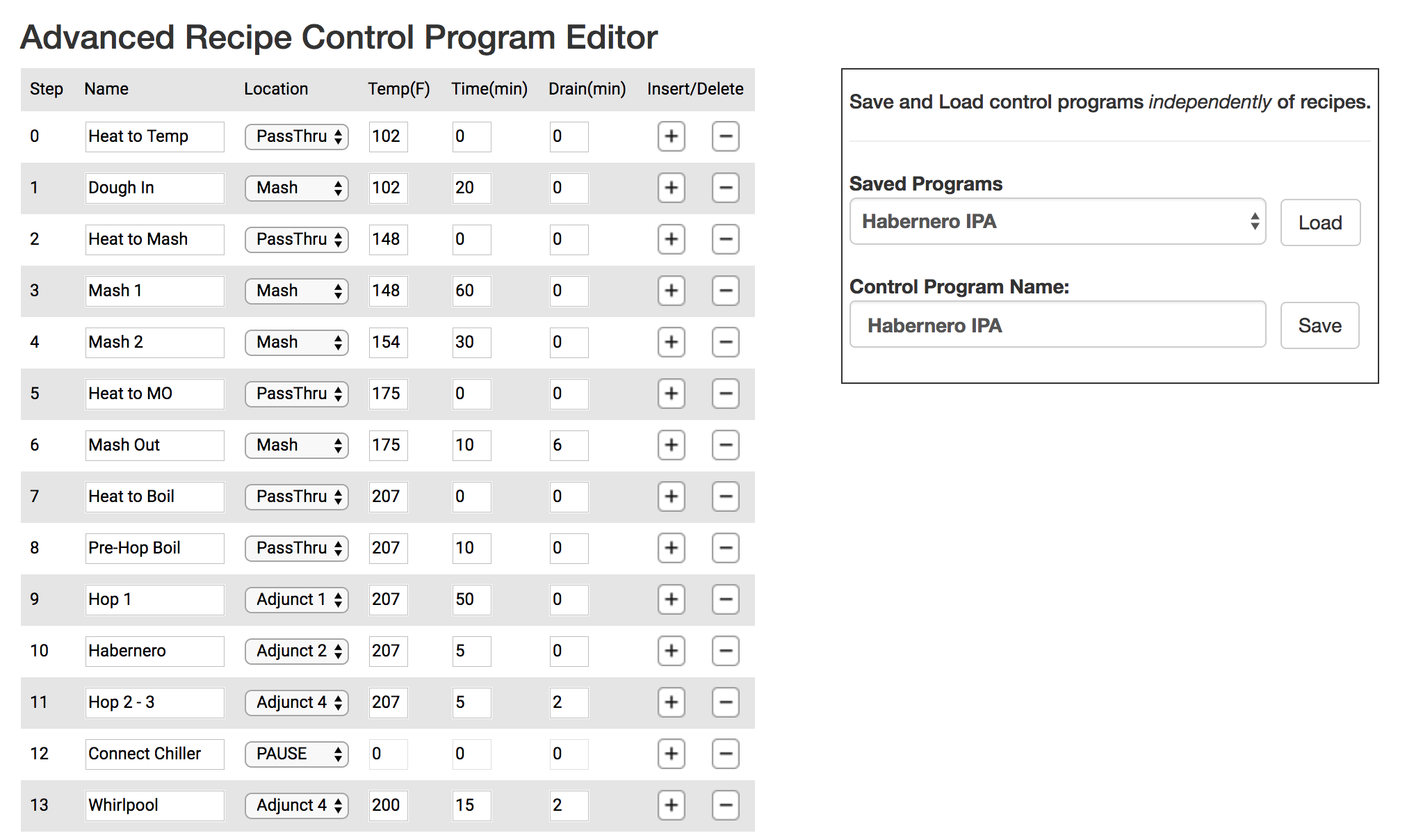 - Next time you make changes to your recipe in the standard recipe editor and are bummed because it then deleted the custom advanced settings that you configured, you can now find it in the 'Saved Programs' list, click load, then click save at the bottom of the page to save it back to the recipe again.