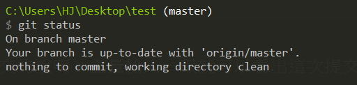 git commit -m "add Hello.py"再使用 git status,你會發現工作區變乾淨了。如下圖