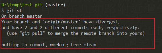 所以我們可以自己設定,讓 Git 以後打 git st = git status 如下圖,原本不能使用 git st ,設定完之後就可以使用了。