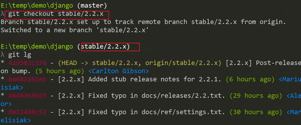 成功切換 remote 的 branch, git checkout stable/2.2.x。