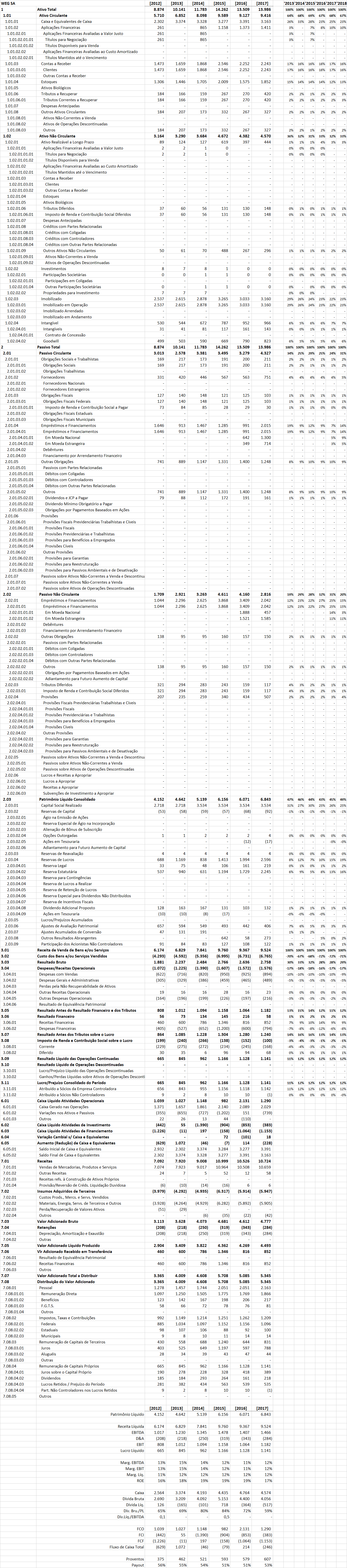 Será criada uma planilha com os dados financeiros (BP, DRE, DFC) e, em outra aba, o resumo de todas as empresas do mesmo setor.