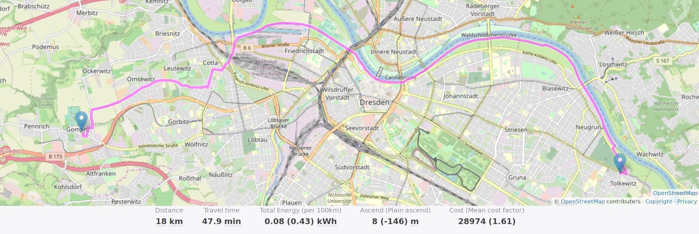 It priorizies good ways and easy riding, but will suggest some more offroad ways to avoid traffic.