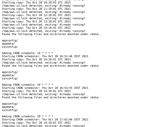 cron.d, which seems to break it and stop it from syncing because of the locking mechanism.The fix should be as simple as making run.sh overwrite the file instead of appending to it.