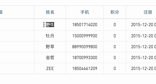 user :列表中某一行数据