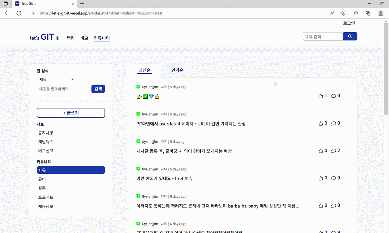 레포지토리 바로가기 : https://github.com/zhwltlr/let-s-Git-it-front