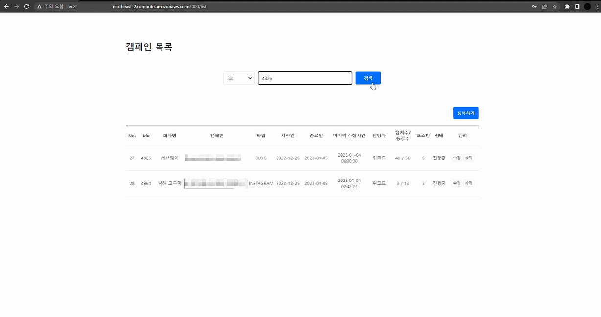 - 캠페인 고유의 index 번호를 endpoint로 하여 등록페이지와 같은 컴포넌트를 사용