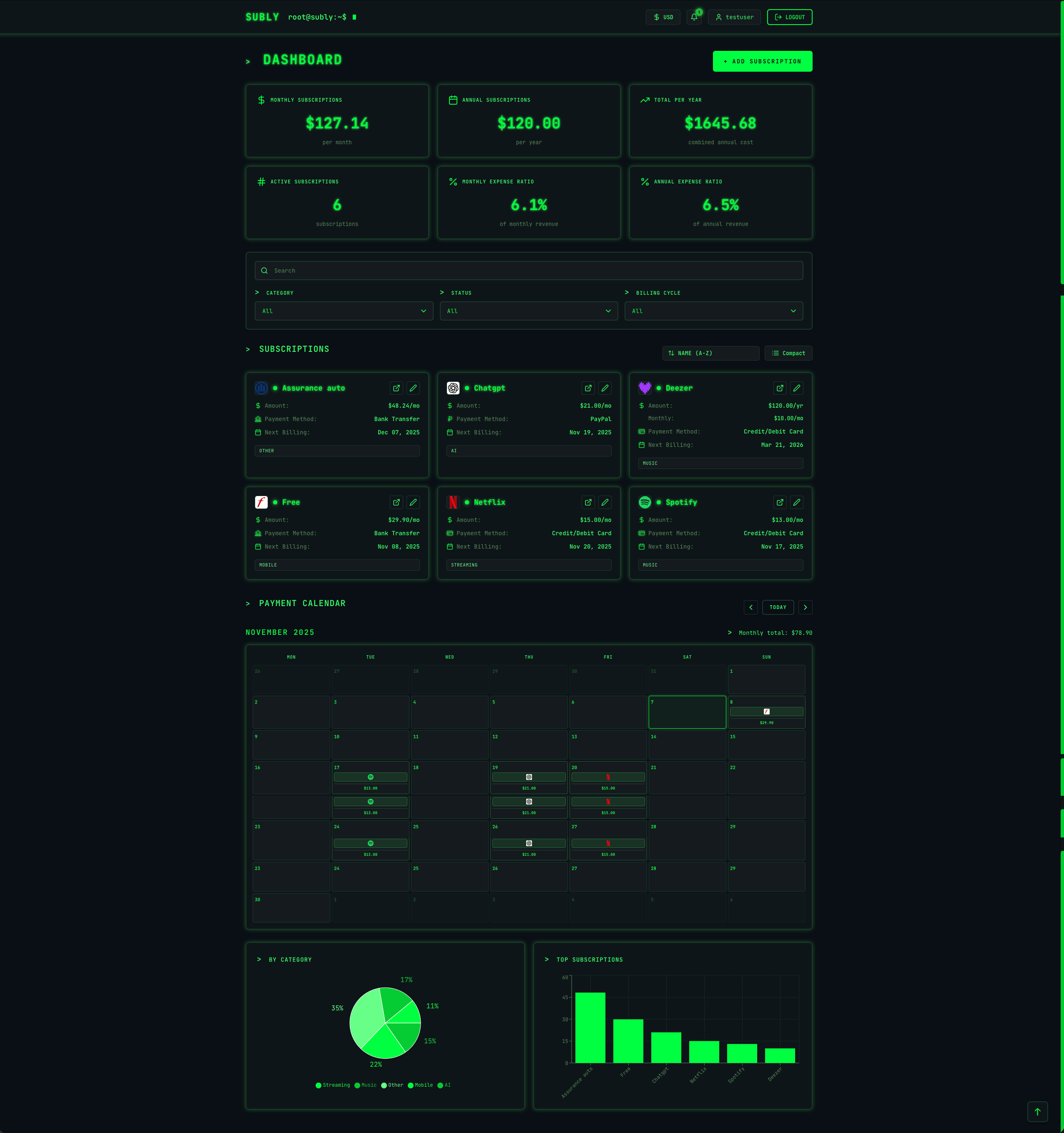 A modern subscription expense tracker with automated reminders and calendar integration